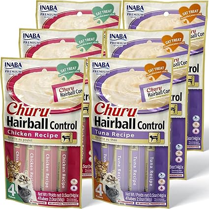 - FUN AND FUNCTIONAL: A first-of-its-kind, creamy purée treat designed to aid with hairball control. Our original Churu formula with an added insoluble vegetable fiber to support healthy digestion and control hairballs